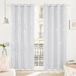 Deconovo Lot De 2 Rideaux Occultants Thermique Isolant, Etoiles DorĂ©s, 117×183 Cm, Bleu Ciel