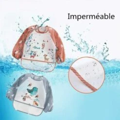Lot De 3 Bavoir Etanche à Manchs Longue Tablier D’Alimentation De Jeu/de Peinture Bavoir Imperméable