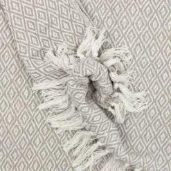 Fouta, Jeté De Lit, Plaid 100% Coton 120 X 150 Cm Avec Franges Jacquard Micromotif Losanges Beige