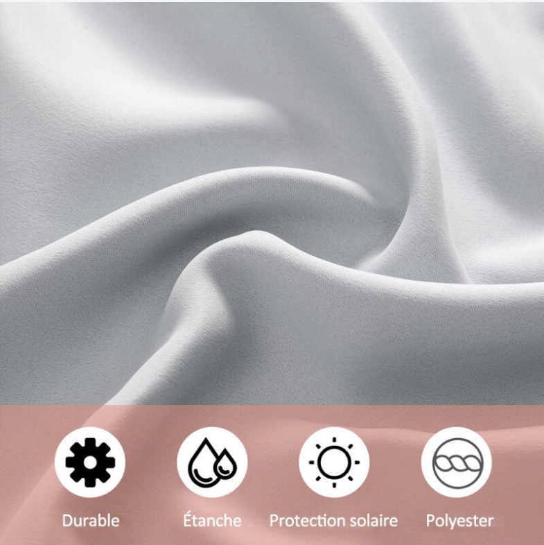 - La description: Le rideau extérieur est tissé de tissu polyester imperméable résistant à la déchirure durable. Le tissu présente des propriétés sèches rapides et peut résister aux éléments de la nature telles que la neige, le vent, la pluie et le soleil.
