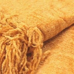 Un Plaid jaune doux et souple avec un beau tissage décoratif et des petites franges fait à la main. À utiliser en jeté de canapé ou en jeté de lit pour ajouter de la chaleur et de la couleur à votre déco.