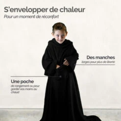 Grâce à sa texture polaire toute douce, ce plaid avec manches vous enveloppe de sa chaleur du cou jusqu’au bout de vos pieds. Confortable, et réconfortant, il vous sera vite indispensable.