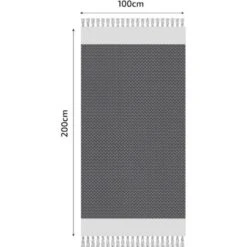 Notre Fouta mesure 100x200cm et comporte des franges Ă©lĂ©gantes torsadĂ©es et nouĂ©es Ă la main, dans un design oriental. DĂ©ployĂ©e, elle est suffisamment grande pour que deux personnes puissent profiter de leur pique-nique ou s’y allonger seules. PliĂ©e, elle est très compacte grâce Ă son tissu fin en coton de haute qualitĂ©, ce qui la rend facile Ă transporter dans tous les sacs de voyage !