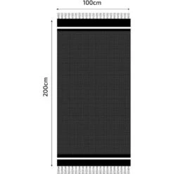 Notre Fouta mesure 100x200cm et comporte des franges Ă©lĂ©gantes torsadĂ©es et nouĂ©es Ă la main, dans un design oriental. DĂ©ployĂ©e, elle est suffisamment grande pour que deux personnes puissent profiter de leur pique-nique ou s’y allonger seules. PliĂ©e, elle est très compacte grâce Ă son tissu fin en coton de haute qualitĂ©, ce qui la rend facile Ă transporter dans tous les sacs de voyage !