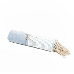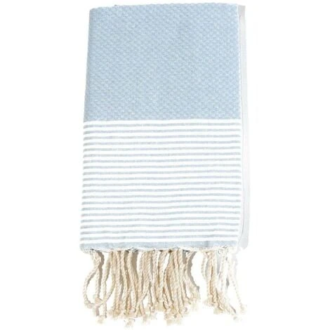Notre Fouta mesure 100x200cm et comporte des franges Ă©lĂ©gantes torsadĂ©es et nouĂ©es Ă la main, dans un design oriental. DĂ©ployĂ©e, elle est suffisamment grande pour que deux personnes puissent profiter de leur pique-nique ou s’y allonger seules. PliĂ©e, elle est très compacte grâce Ă son tissu fin en coton de haute qualitĂ©, ce qui la rend facile Ă transporter dans tous les sacs de voyage !