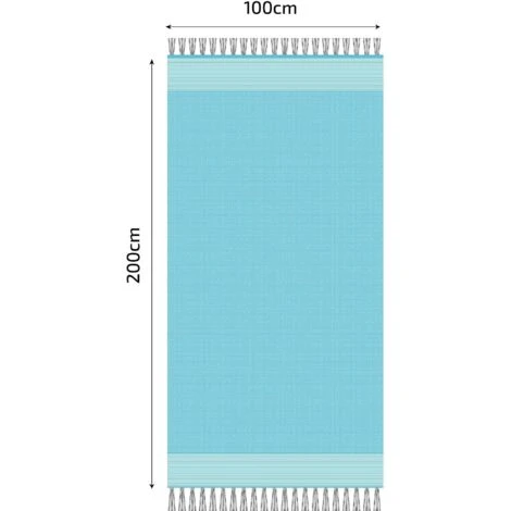 Notre Fouta mesure 100x200cm et comporte des franges Ă©lĂ©gantes torsadĂ©es et nouĂ©es Ă la main, dans un design oriental. DĂ©ployĂ©e, elle est suffisamment grande pour que deux personnes puissent profiter de leur pique-nique ou s’y allonger seules. PliĂ©e, elle est très compacte grâce Ă son tissu fin en coton de haute qualitĂ©, ce qui la rend facile Ă transporter dans tous les sacs de voyage !
