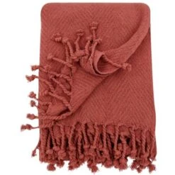 Fouta, jeté de lit, plaid 100% coton 120 x 150 cm avec franges jacquard motif chevrons ton sur ton terracotta. Une fouta à la couleur tendance à utiliser à la plage, comme paréo ou comme plaid.