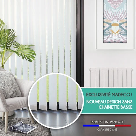 Laissez vous charmer par ce kit complet pour store californien à lamelles verticales de 89mm sans chainette basse. Nouveau design ! Sur ce store californien, les lamelles ne sont pas reliées par un cordon dans le bas comme sur un store californien classique. La perfection n’est pas un détail mais c’est le détail qui fait la perfection !