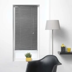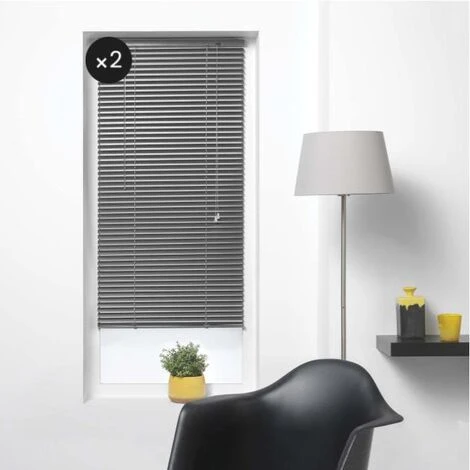 Lot de 2 Store vénitien à lamelles en aluminium 50 x 130 cm Gris anthracite. Pose facile sans perçage. Touche décorative et tendance pour votre fenêtre: Hauteur réglable, Store en aluminium avec plis de 2.5 cm de largeur, Occultation partielle, Protection contre la chaleur et la lumière du soleil. Courbure des lamelles vers l’intérieur pour un lavage avec un chiffon humide. Kit de fixation fourni