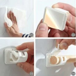 Caractristiques : adhsif 3M puissant sur le ct arrire, facile installer. Pas besoin de punch holes, pas de clous, pas de dommages au mur. Household Non-drilled Round Rod Fixing Clip, Wall Bracket Bathroom Towel Bracket Curtain Home Organizer Wall Ring Hook Holders Clips.With a auto-stick back, easy to install without any tool. .