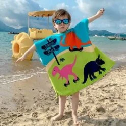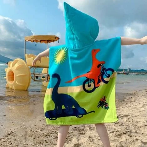 Poncho serviette de bain pour enfants en 100 % microfibre, est super doux et confortable.
