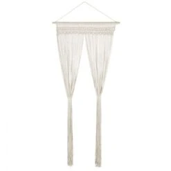Description du rideau macramé 90X200 cmProfitez de ce joli rideau en macramé coloris beige pour apporter une touche d’originalité à votre décoration. Idéal pour habiller un mur, ce rideau beige est polyvalent. Il peut s’utiliser de différentes façons : comme rideau ou comme séparateur de pièce en fonction de vos besoins. Accessoire indispensable des années 70, ce rideau en macramé apportera à votre intérieur un style rétro bohème très tendance !Ce rideau macramé de 90 x 200 cm est fabriqué en polyester, son coloris beige est typique des rideaux de l’époque. Ce long rideau de 200 cm est facile à installer, il vous suffit de l’accrocher à la surface souhaitée en utilisant un crochet (non fourni). Vous pourrez profiter d’une hauteur maximale de 20 cm au-dessus de la barre. Ce rideau apporte une touche chaleureuse et naturelle chez vous. Facile à déplacer, vous pourrez l’utiliser en fonction de vos besoins.Ce rideau mesure L.90xl.2xH.200 cm, le diamètre de la barre en bois est de 2 cm. Profitez de sa hauteur pour l’accrocher où vous le souhaitez. Ses longues tiges beiges habilleront avec goût votre mur et personnalisent votre intérieur. Son design tendance apportera une touche de nouveauté à votre espace.Craquez pour ce superbe rideau en macramé de 90 x 200 cm à petit prix !Dimensions du rideau macraméDimensions totales : Longueur 90 x largeur 2 x Hauteur 200 cmDiamètre de la barre en bois : 2 cmHauteur maximale de l’accroche : 20 cm au dessus de la barreDécouvrez aussi notre lot de 4 porte-plantes macramé pour compléter votre décoration !