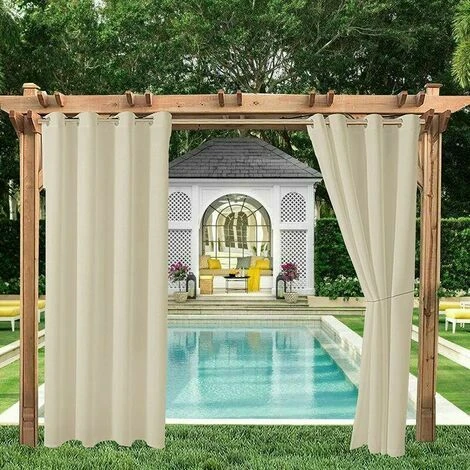 Décor élégant: Les rideaux occultants tiennent bien aux éléments météorologiques extérieurs et résistent à la décoloration.Les deux c?tés des rideaux sont du même matériau et de la même couleur. L’aspect simple et élégant des rideaux complète votre terrasse et ajoute une touche cosy.