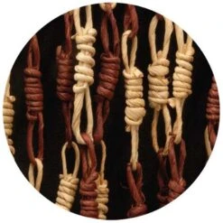 Rideau de porte à lanières de feuille de maïs, monté sur un rail bois.