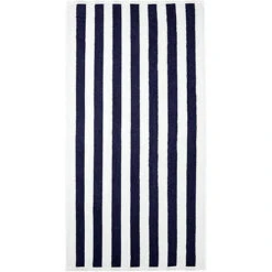 Serviette imprimé à rayure style marinière Bleu marine et blanc.