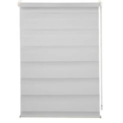 Tissu : Bandes alternant tissu voilage et tissu tamisant.