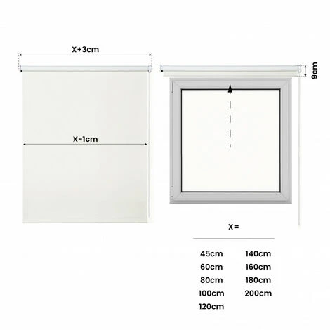 Le tissu du store mesure 1 cm de moins que la largeur totale du store. Tenez compte de ces informations au moment de prendre les mesures et votre store occultant sera parfait où que vous le placiez.