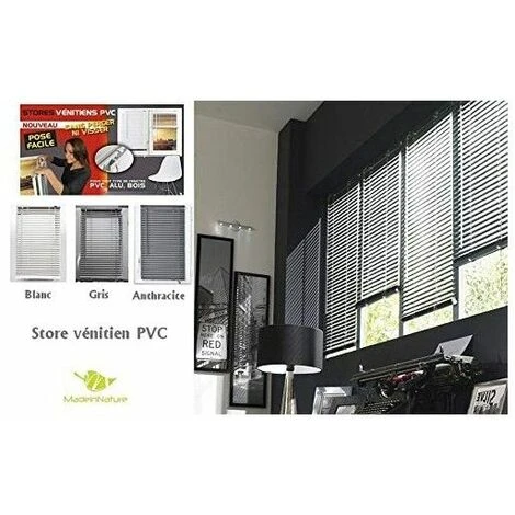 · Vous pouvez adapter ce store PVC à toutes les tailles de fenêtre, puisque la largeur est facilement ajustable. (Les lames se coupent aux ciseaux, et la barre du haut, avec une scie à métaux).