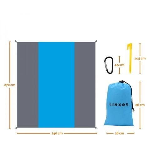 Le tapis de plage anti-sable mesure 270 cm de longueur par 240 cm de largeur.