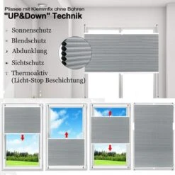 Montage sans percer ni visser:❤Le store plissé est facile à installer. à retirer et à utiliser. Il est fixé aux coins des cadres de fenêtre par 4 pinces réglables et retiré en desserrant la fixation sans perçage. La position du store peut être changé lorsque la fenêtre est inclinée. Poussez et tirez la poignée pour ajuster le store plissé vers le haut ou le bas pendant l’utilisation.